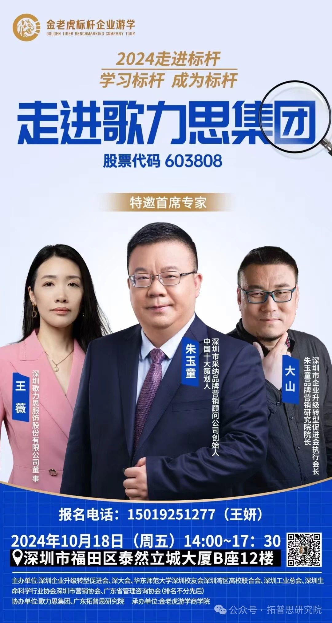 金老虎標桿企業(yè)游學(xué),是由深圳企業(yè)升級轉(zhuǎn)型促進會、深大會、華東師范大學(xué)深圳校友會、深圳灣區(qū)高校聯(lián)合會、深圳工業(yè)總會、深圳生命科學(xué)行業(yè)協(xié)會、深圳市營銷協(xié)會、廣東省管理咨詢協(xié)會(排名不分先后)等多家協(xié)會主辦,采納金老虎游學(xué)商學(xué)院承辦,廣東拓普思研究院、歌力思集團協(xié)辦的一項意義非凡的活動。游學(xué)旨在服務(wù)各協(xié)會會員,帶領(lǐng)企業(yè)家"走出去拿進來",在見天地、見眾生、見自己中突破企業(yè)發(fā)展瓶頸,在專家老師引領(lǐng)下實現(xiàn)企業(yè)絕對增長。