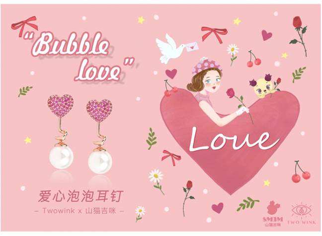 愛心泡泡系列首飾選取Two wink品牌的DNA元素-心形作為切入點(diǎn),心形象征愛情,泡泡營造浪漫的氣氛,愛心泡泡的兩戴設(shè)計(jì)更適合不同場景的搭配。