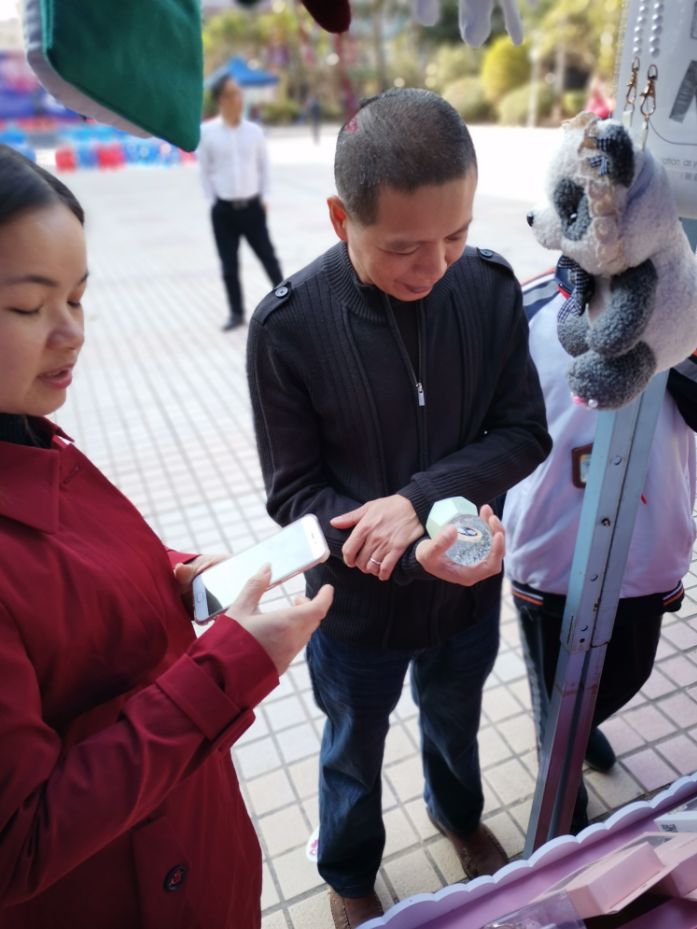 有一位女士三次來到哎趴屋快閃店,前后共購入七八款I(lǐng)P產(chǎn)品,她說哎趴屋的每一樣產(chǎn)品都讓她喜歡得不得了,并向工作人員詳細打聽了哎趴屋在黃江的終端店地址,表示有空一定要去終端店看看。還有一個可愛的小粉絲,對哎趴屋的產(chǎn)品愛不釋手,抱著喜歡的藍牙音響不肯放手。