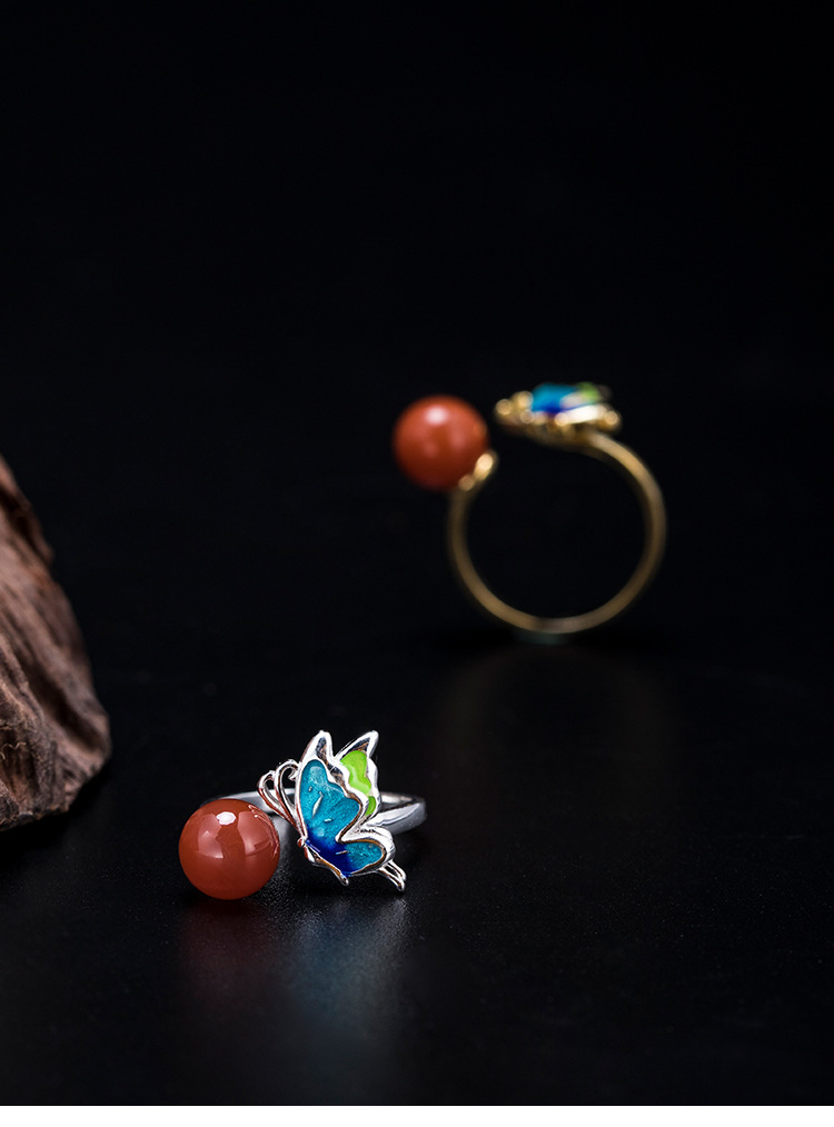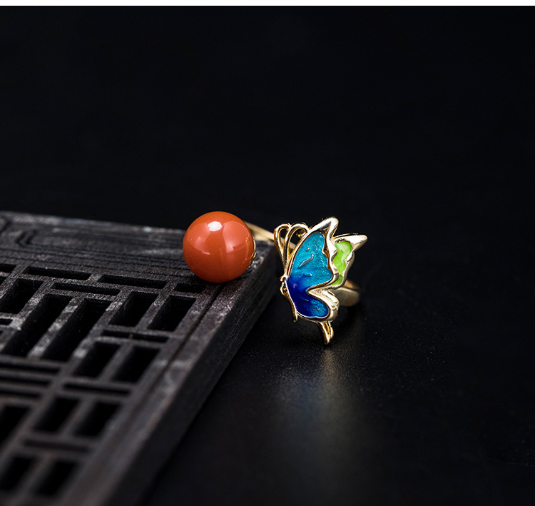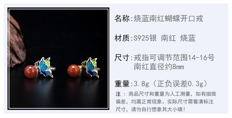 燒藍(lán)南紅蝴蝶開口戒