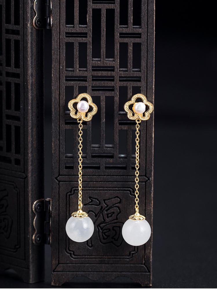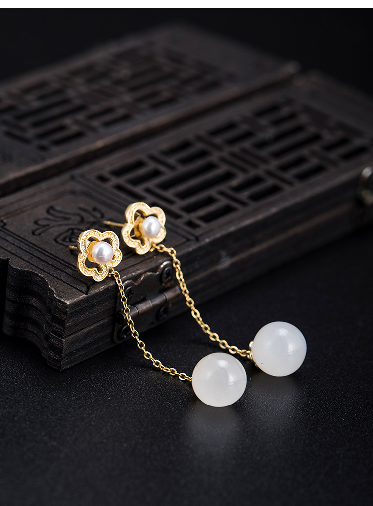 花朵珍珠和田玉耳環(huán)