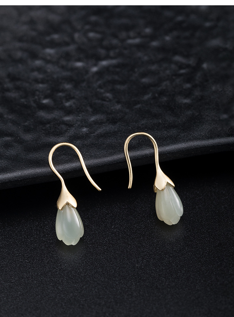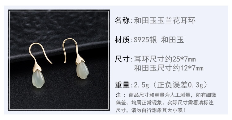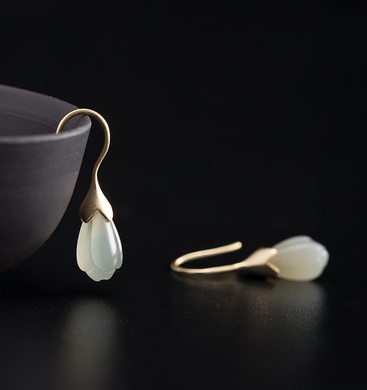 和田玉玉蘭花耳墜