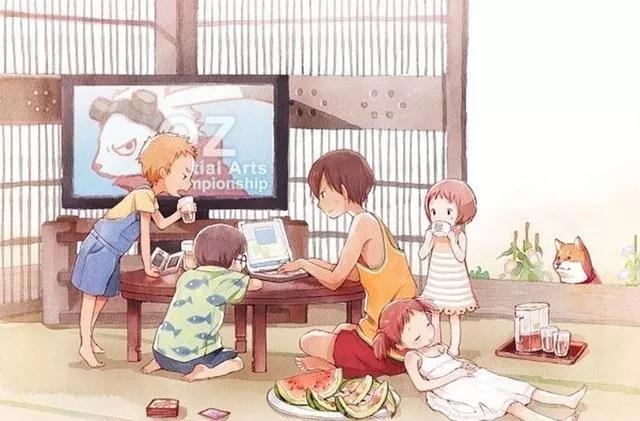 一邊啃著西瓜,一邊享受穿堂風(fēng)的愜意