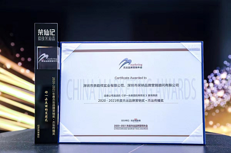 查看詳情11月2日,由《經(jīng)濟觀察報》主辦,中國廣告協(xié)會指導的“品牌向上——2021年度營響大會”,暨第十九屆杰出品牌營銷年會的獲獎名單正式發(fā)布。深圳市茶仙記愛的茉莉香(茶仙記品牌公司)在第十九屆杰出品牌營銷獎年度單項獎中榮獲杰出品牌營銷獎-杰出傳播獎。 茶仙記品牌 “好一朵美麗的茉莉花”項目獲獎獎杯 經(jīng)觀傳媒主辦的杰出品牌營銷年會截止目前已成功舉辦至第十九...