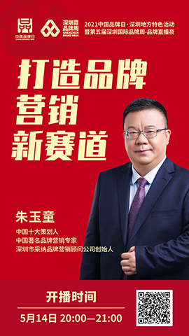 2021年中國品牌日.深圳地方特色活動(dòng),暨第五屆深圳國際品牌周—直播夜于5月14日晚8點(diǎn)準(zhǔn)時(shí)開播,中國十大策劃人、著名品牌營銷專家、深圳市采納品牌營銷顧問公司總經(jīng)理朱玉童先生再次受主辦方深圳工業(yè)總會(huì)的邀請,為本次直播夜的主講老師! 朱玉童老師本次線上直播分享的主題為《打造品牌營銷新賽道》,朱老師表示,這個(gè)時(shí)代,傳統(tǒng)產(chǎn)品品牌遭遇著巨大的挑戰(zhàn),產(chǎn)品各種...