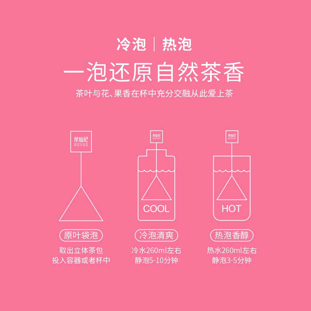 第六、為了讓茶仙記達(dá)到一上市就熱銷的程度,茶韻祥公司的研發(fā)人員對產(chǎn)品的口味進(jìn)行了精心的研究,并在年輕人中做了大量的測試,終于推出了年輕人非常喜歡的一些口味茶——蔓越莓茶、白桃烏龍茶、藍(lán)莓茶、茉莉龍珠茶等等,而且包裝也打破了傳統(tǒng)茶的包裝風(fēng)格,更加鮮艷靚麗,顏值奪人眼球!