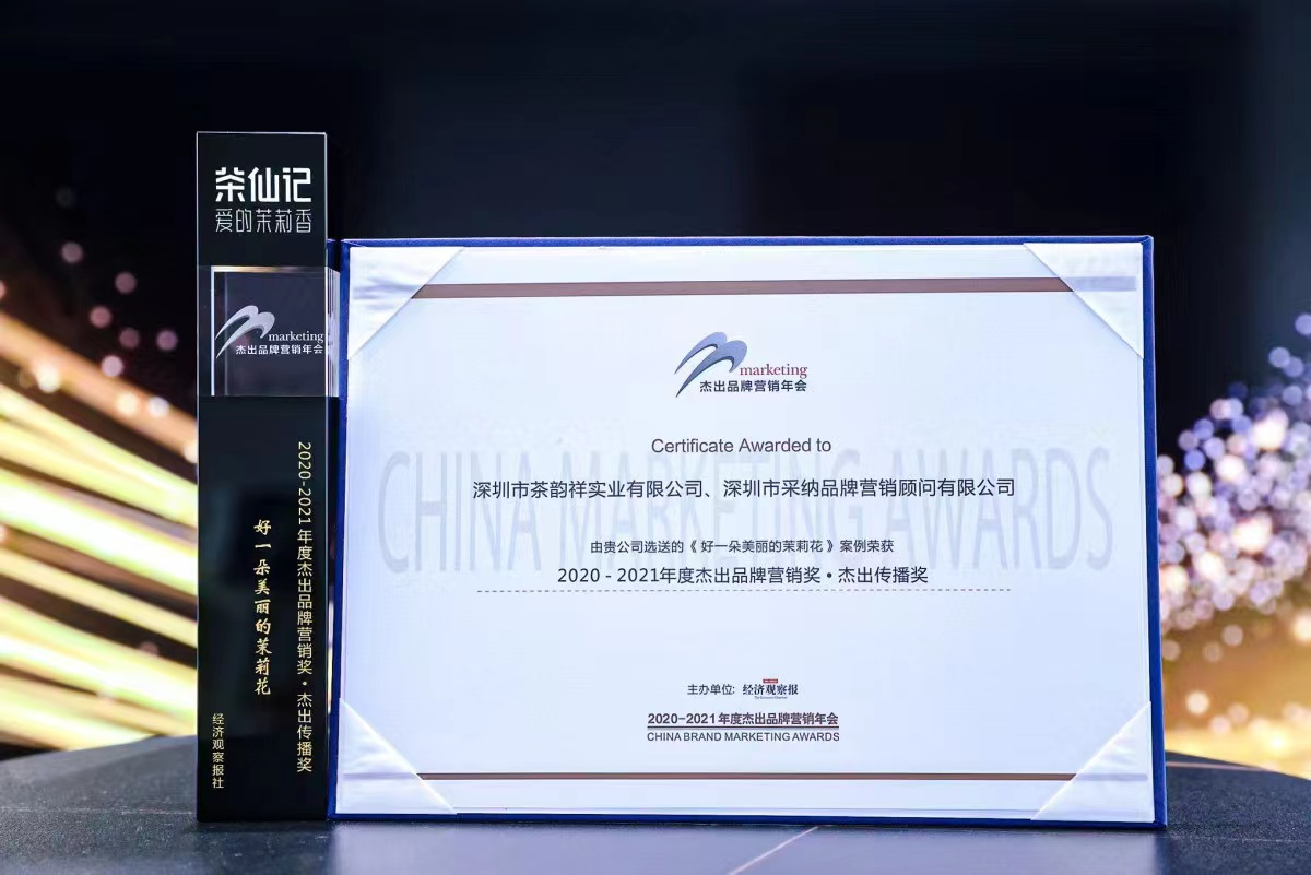 在今年的營銷年會中,茶仙記品牌憑借 “好一朵美麗的茉莉花” 項目案例,在經(jīng)過了各項嚴(yán)苛評審后,最終在266份參審案例中脫穎而出,一舉奪得了2021年度杰出品牌營銷獎-杰出傳播獎殊榮。