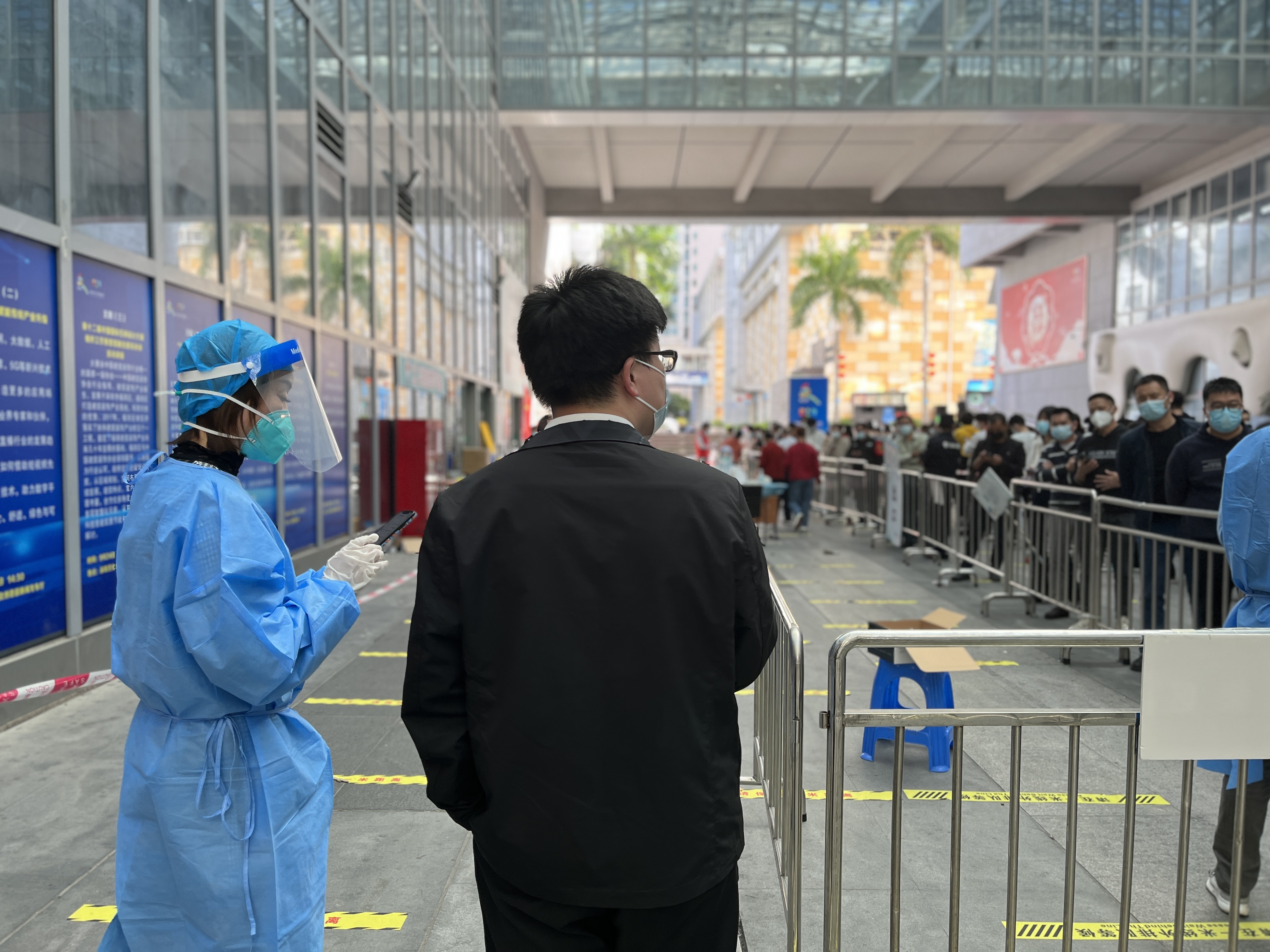 公司員工在社區(qū)的統(tǒng)一安排下,前往核酸檢測(cè)一線,協(xié)助開(kāi)展核酸檢測(cè)、排查登記、秩序維護(hù)等疫情防控志愿服務(wù),在保護(hù)好自身安全的情況下,全力投入到防疫工作中。變身暖心“志愿者”為園區(qū)的健康和安全保駕護(hù)航。