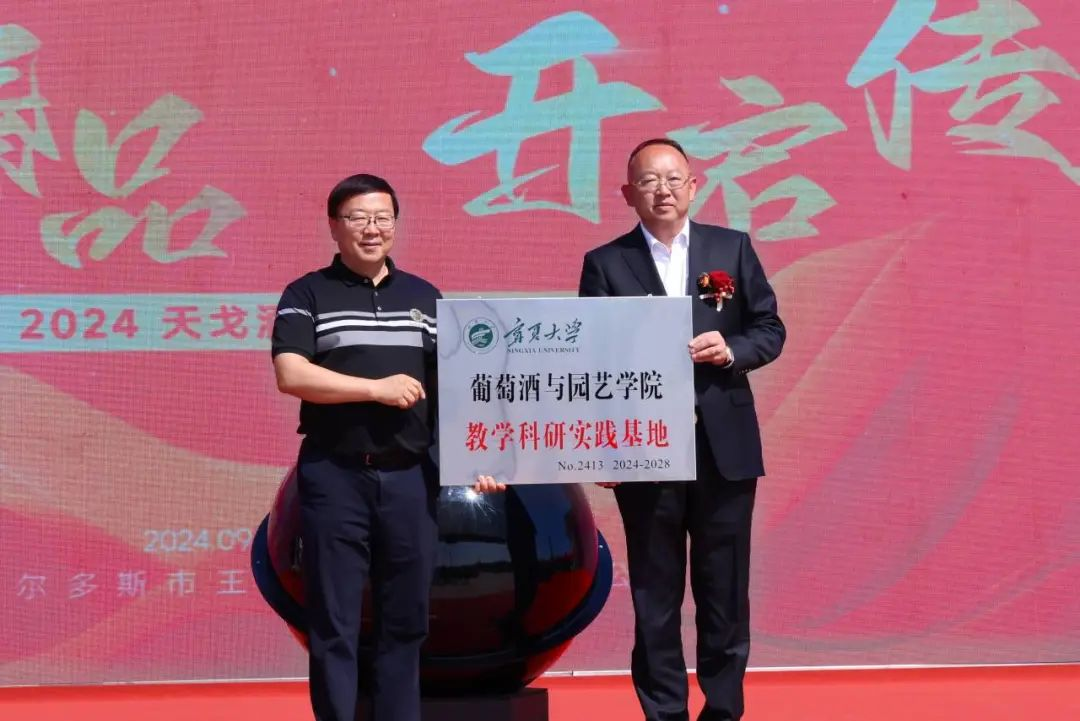 從投產(chǎn)建設(shè)到引領(lǐng)當(dāng)?shù)禺a(chǎn)業(yè)轉(zhuǎn)型,技術(shù)創(chuàng)新和產(chǎn)品品質(zhì)是基礎(chǔ)。天戈酒莊自建莊以來,先后種植了包括黑皮諾、馬瑟蘭、霞多麗等國際知名的葡萄品種,特別聘請(qǐng)了國內(nèi)釀酒葡萄種植專家教授進(jìn)行種植全過程技術(shù)指導(dǎo),并由中法兩國釀酒師聯(lián)手進(jìn)行釀造。著眼于未來葡萄酒產(chǎn)業(yè)的創(chuàng)新與發(fā)展,天戈還與寧夏大學(xué)建立了校企合作科研、種植、釀造實(shí)踐基地,并在投產(chǎn)慶典上,黃河代表寧夏大學(xué)葡萄酒與園藝學(xué)院為酒莊進(jìn)行“教學(xué)科研實(shí)踐基地”授牌。
