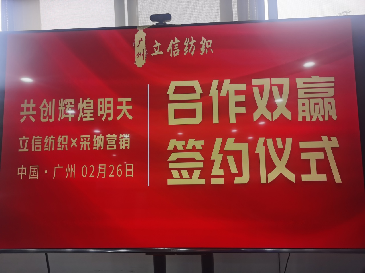 2025年2月26日,廣州立信紡織與采納營銷在廣州隆重舉行“合作雙贏”簽約儀式,正式開啟戰(zhàn)略合作,雙方攜手致力于打造紡織行業(yè)冠軍品牌,在業(yè)內(nèi)引發(fā)廣泛關(guān)注。
