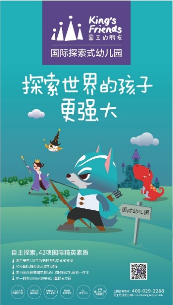 其中,品牌定位是“國際探索式教育開創(chuàng)者”,最重要的品牌主張 —— “探索世界的孩子更強大”,清晰、動人地傳達了國王的朋友探索式教育對父母的最高承諾,占據探索這個詞,讓國王的朋友和探索直接產生關系,而探索世界,是每一個孩子成長的必經之路,因為探索更強大,強大的孩子是國王的朋友給家長帶來的根本利益。