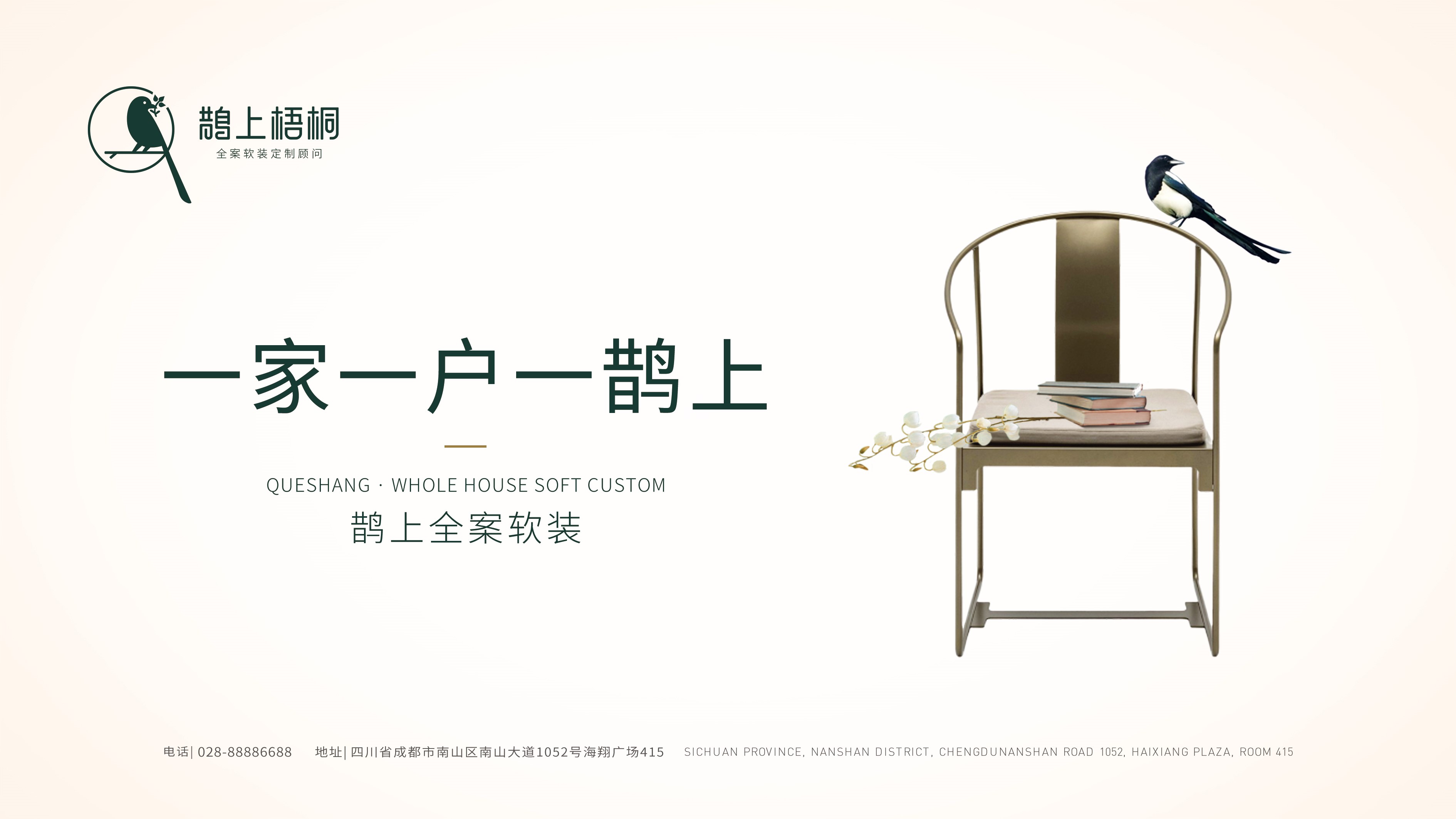 鵲上梧桐的品牌定位是全案軟裝定制顧問,品牌主張是“一家一戶一鵲上”。