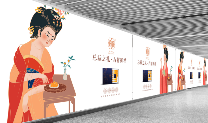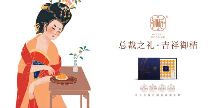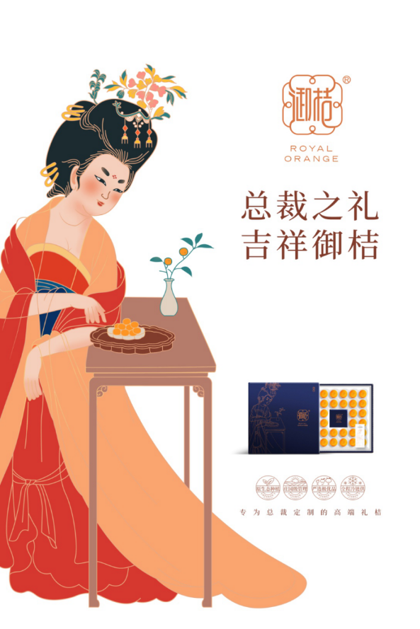 為夯實(shí)御桔的唐貢文化,采納給御桔找一位代言人——楊貴妃,打造“貴妃品桔”的品牌視覺錘,用人們熟知的大唐超級(jí)符號(hào),將“皇家禮桔、高端禮桔”的釘子砸進(jìn)消費(fèi)者認(rèn)知。