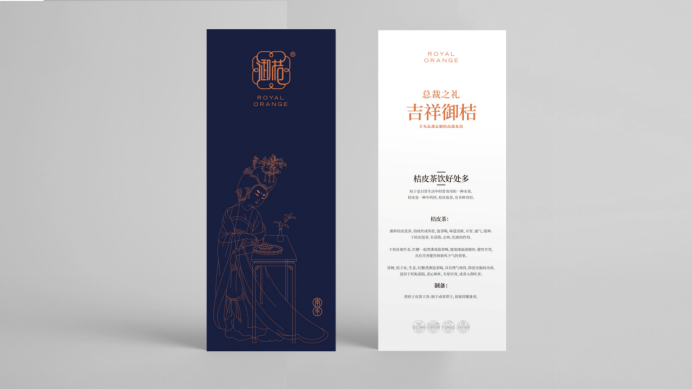 在色彩策略方面,采用皇家御用的藏青色和桔黃色搭配,讓御桔與眾不同,“御”味十足。