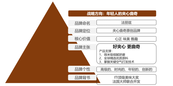 3.打法聚焦:明確品類戰(zhàn)略,以?shī)A心曲奇為核心產(chǎn)品設(shè)計(jì)科學(xué)、兼顧品牌資產(chǎn)和拓展空間的多品牌戰(zhàn)略,統(tǒng)一戰(zhàn)略發(fā)展思路和口徑。