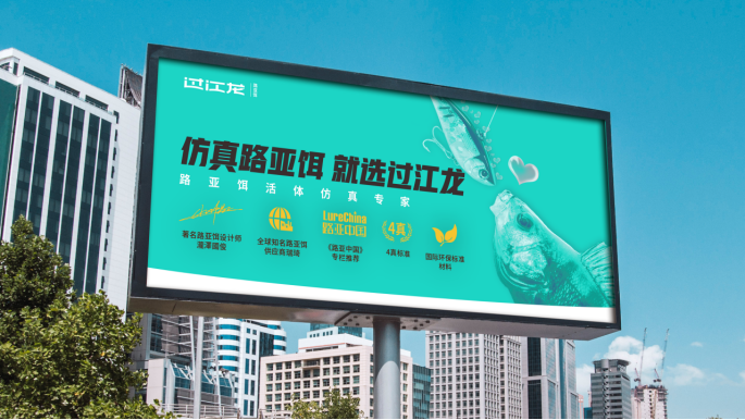 一切的設(shè)計(jì)都是為了便于讓消費(fèi)者傳播。所以在設(shè)計(jì)呈現(xiàn)上,采納為過江龍采用了魚餌+魚+愛心的組合設(shè)計(jì),不僅凸顯了過江龍魚餌的“泳姿仿生、外形仿真”特性,更通過極具吸引力的方式展現(xiàn)了其作為高品質(zhì)“真”魚餌的魅力。這一設(shè)計(jì)不僅便于消費(fèi)者傳播,還在無形中加強(qiáng)了過江龍品牌與消費(fèi)者之間的情感連接。每當(dāng)消費(fèi)者看到那個(gè)充滿生命力的魚形和愛心標(biāo)志,都會(huì)想起過江龍品牌的承諾和品質(zhì),從而建立起更加深厚的品牌忠誠度。