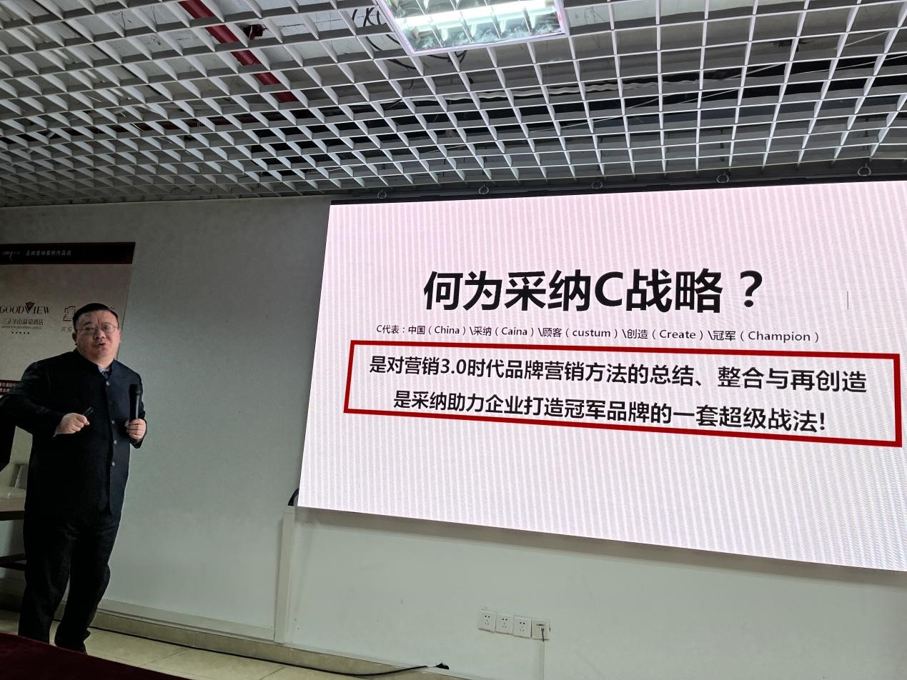 “采納C戰(zhàn)略”。C代表——china(中國)caina (采納)create(創(chuàng)造)champion(冠軍),連在一起的意思這套戰(zhàn)略系統(tǒng)就是中國采納創(chuàng)造冠軍品牌!